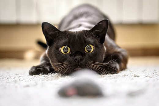 When playing with your cat, avoid using your hands or feet as toys. Toss a cat toy or use fishing pole lures to redirect their energy out of biting range. Give cats a five-minute timeout in a room alone when play turns rough. Removing the source of their fun teaches them that they must play nice for games to continue.